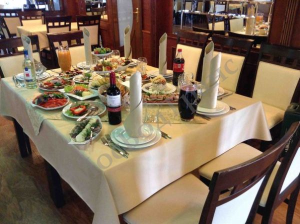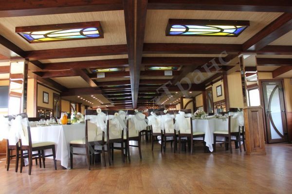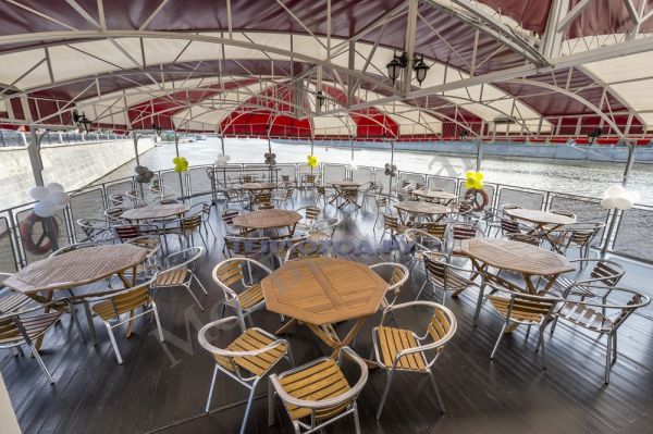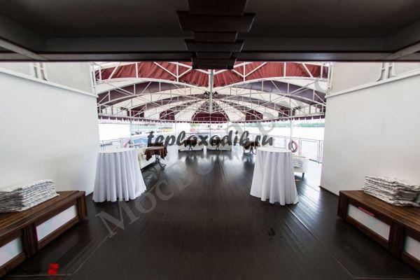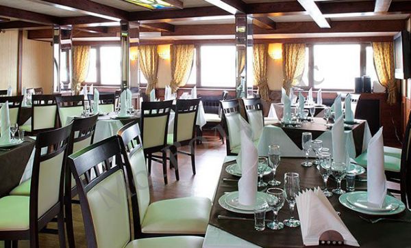 Верхняя палуба просторная, является своего рода шатром. На нижней палубе находится ресторан с превосходнейшей кухней. Салон ресторана решен в стиле модерн. Вместимость банкетного зала 110 человек при банкетной рассадке и 200 в формате фуршета. Имеется система кондиционирования.