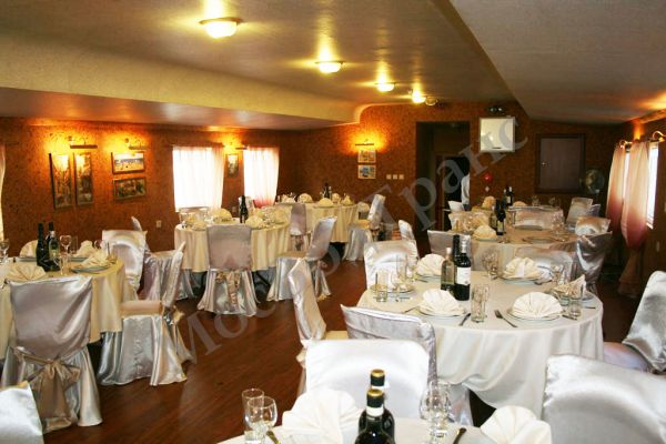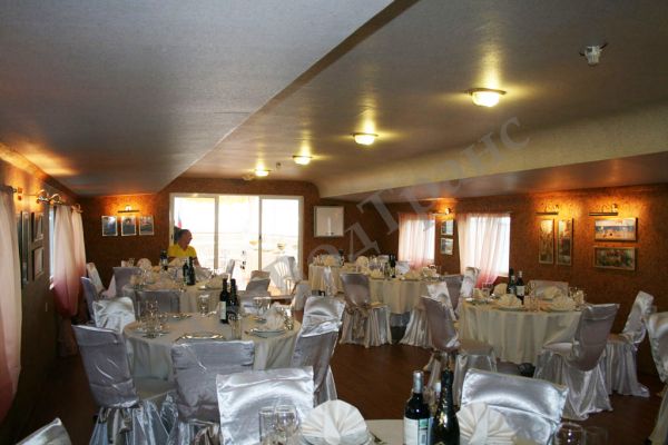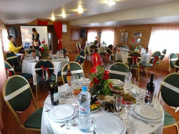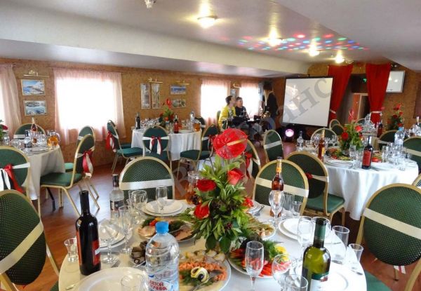 Банкетный зал. Дизайнерам удалось создать атмосферу домашнего уюта благодаря небольшим окнам, отделке стен и картинам с городскими пейзажами. Температура в банкетном зале регулируется системой климат контроля. Возможна установка оборудования для проведения развлекательной программы. Из банкетного зала через стеклянную дверь можно выйти на экскурсионную крытую тентом палубу. В хорошую погоду столы могут быть перенесены сюда. И организован банкет или фуршет на открытом воздухе. Еще одна дверь ведет из банкетного зала в кают-компанию, где оборудован бар и установлена мягкая кожаная мебель.