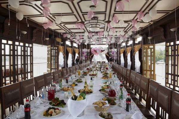 Ресторан теплохода предлагает сбалансированное банкетное или фуршетное меню русской кухни с элементами лучшей кавказкой. Все блюда готовятся непосредственно на судне.