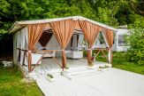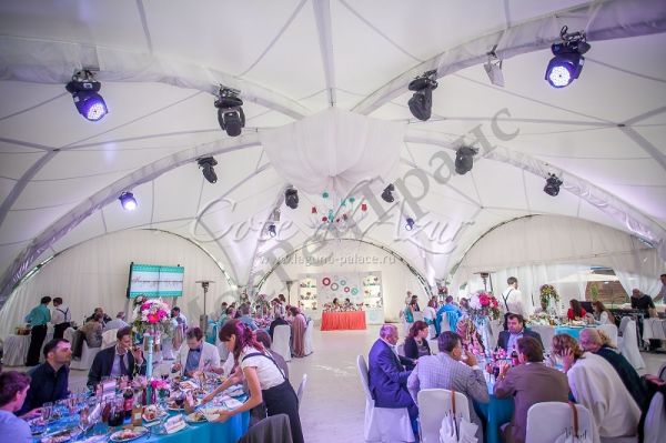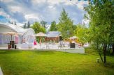 Описание: закрытая территория с охраняемой парковкой на 50 машиномест. Панорамный вид на водную гладь и прекрасный лесной массив. На территории расположены шатер 260 кв.м., футбольное и волейбольное поля для проведения корпоративных праздников, крытый теннисный корт, зеленая поляна, биотуалеты.